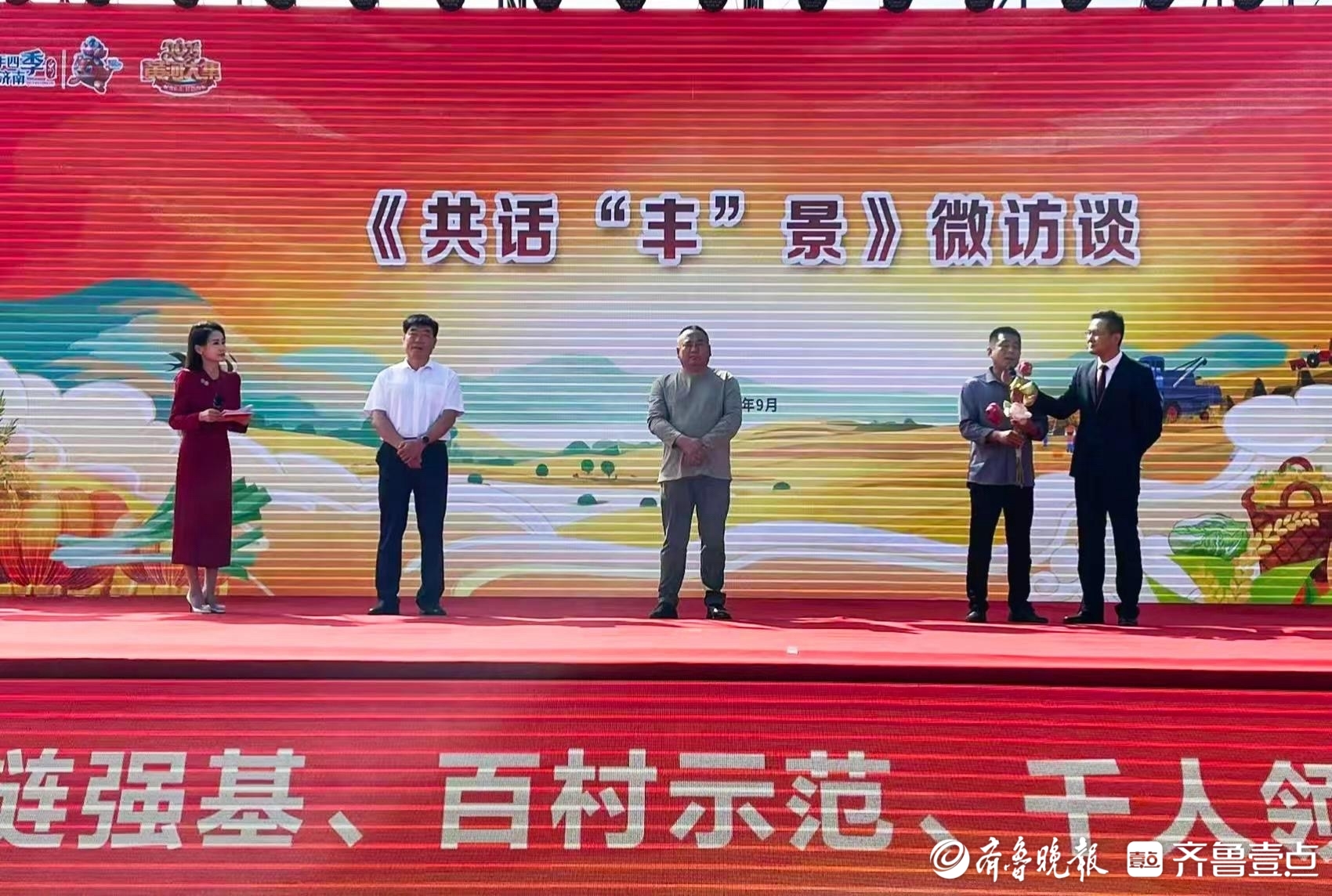 活动现场,歌舞《最爱家乡包楞调》声音淳朴,唱出了幸福生活;《共话新“丰”景》微访谈,讲述着丰收故事;为“齐鲁乡村之星”佩发绶带、为“农产品销售优胜单位”授牌、为“乡村振兴带头人”颁发证书,重大农业项目签约……一个个繁忙的身影,一张张喜悦的笑脸,表达着对土地的热爱和对丰收的赞美。