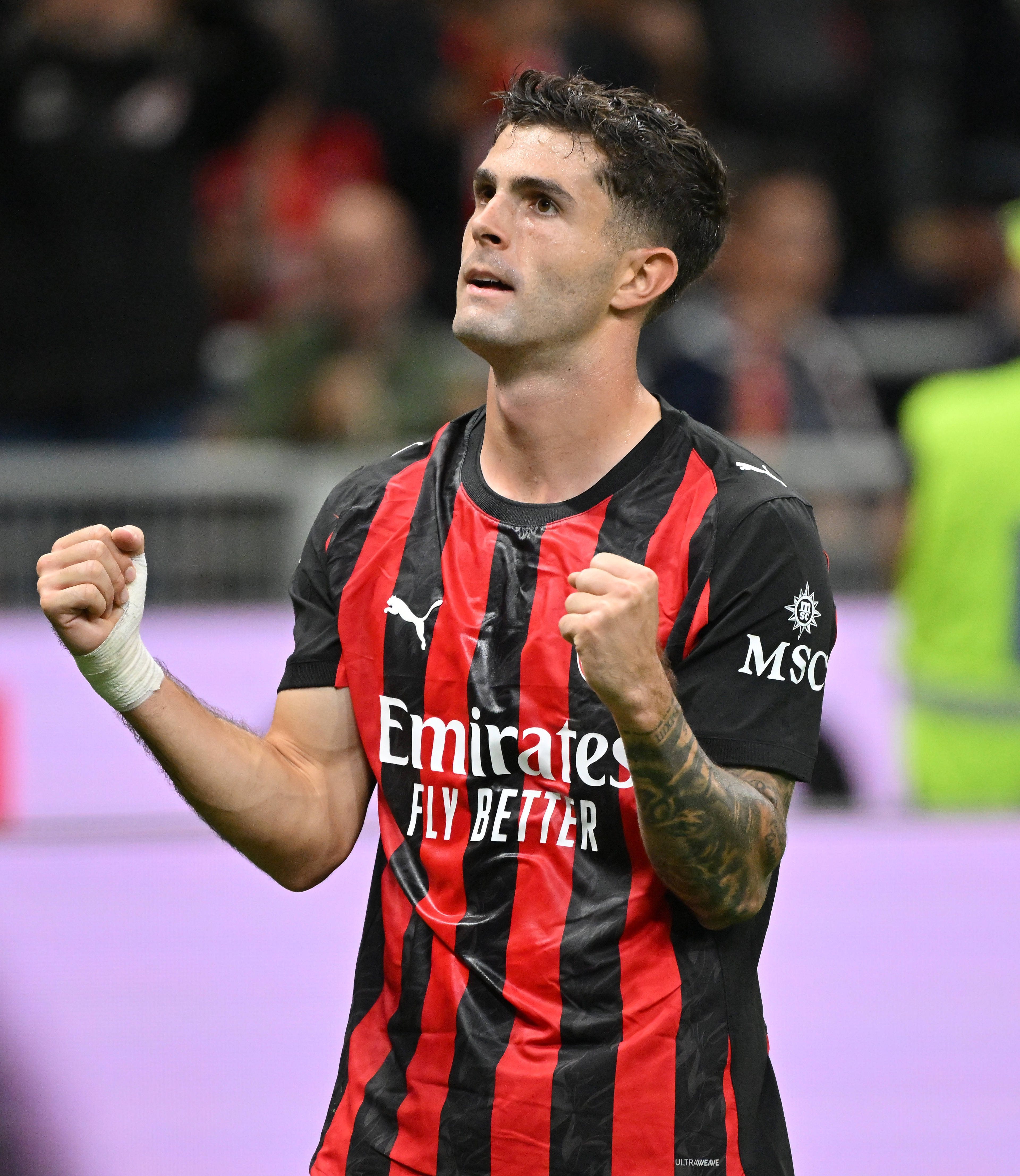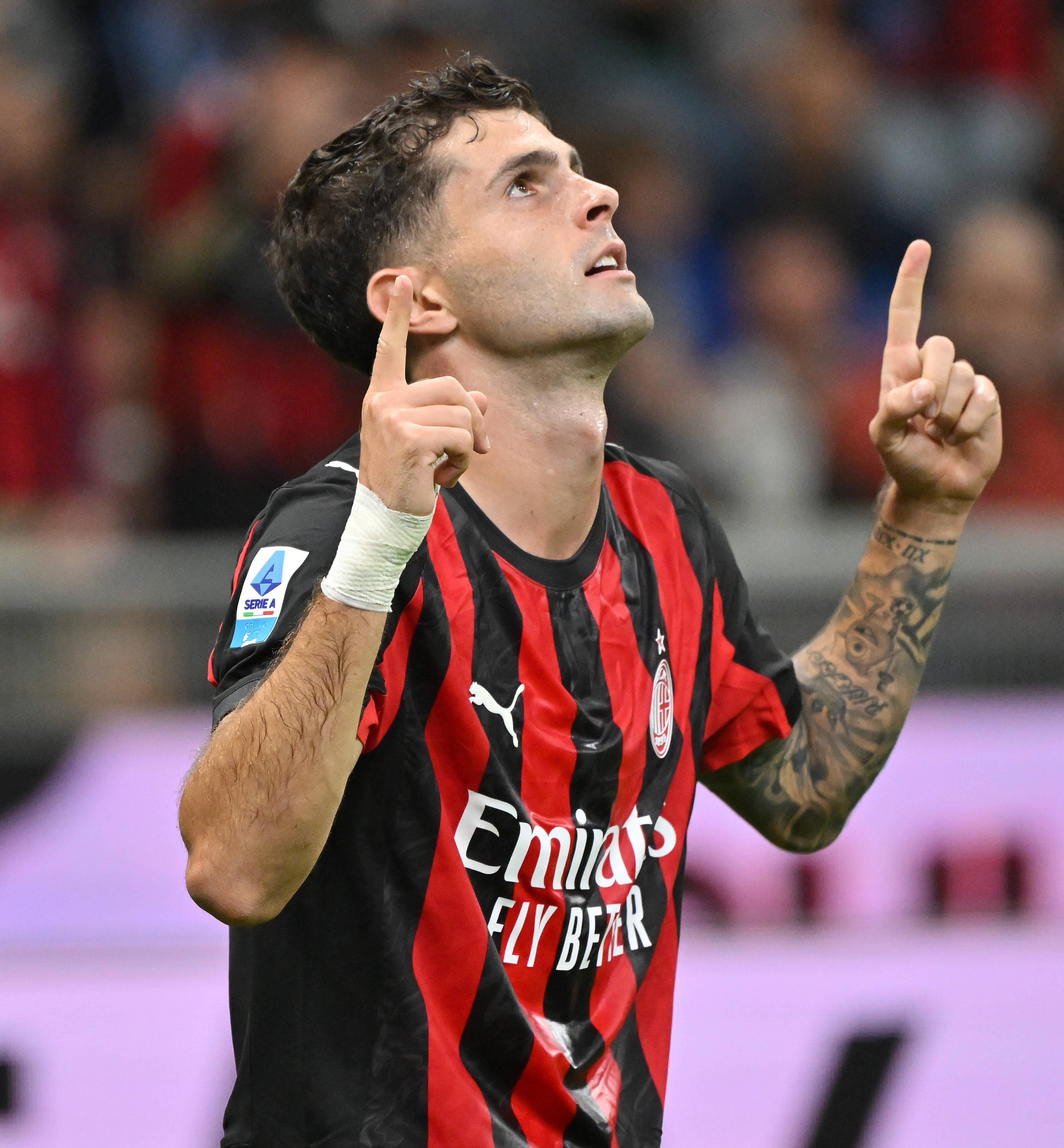 9月28日,AC米兰队球员普利希奇庆祝进球。 新华社发(阿尔贝托·林格利亚摄)