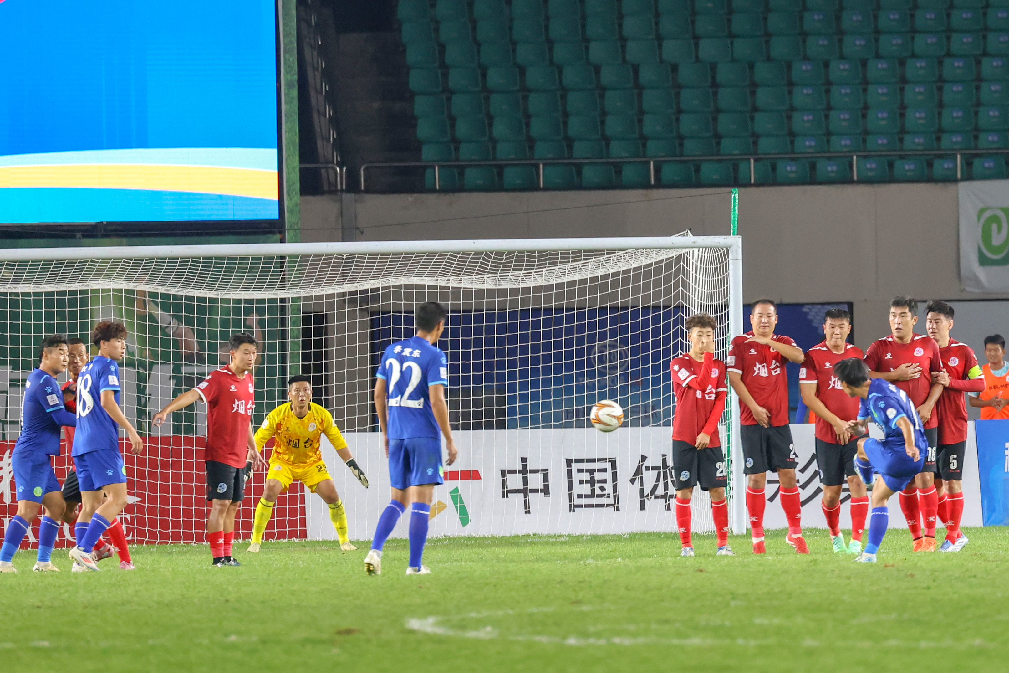 王海在烟台对战潍坊的比赛中表现英勇,频现神扑救