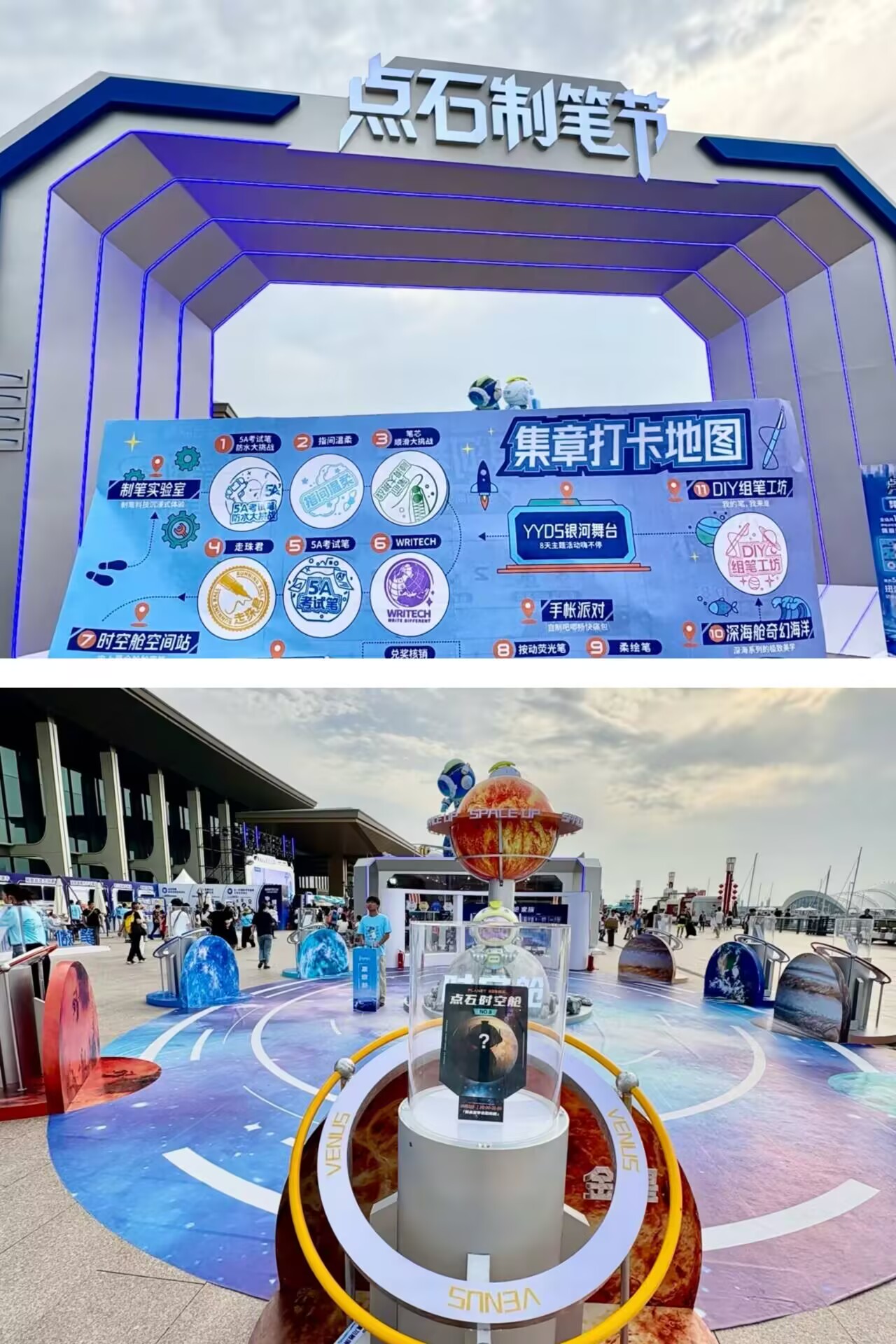 午后傍晚,不妨来奥帆中心体验一段“出海时光”。乘船迎风,看白帆点点,灯塔静默,却弥漫着无言浪漫。傍晚的奥帆,是“落日归山海”的具象呈现。当落日把海面染成橘子汽水色,晚霞渐渐褪去,灯光依次亮起,整个港湾的灯火像铺在黑丝绒上的星河,成为无数情侣牵手、相拥、许下诺言的“心动现场”,也许下一秒,你们就是故事的主角。海景晚餐推荐:蓝港海鲜臻选店(奥帆中心店)坐拥一线海景,窗外是灯光闪烁的奥帆夜景,窗内是热气腾腾的鲜活海鲜。一口美食,一眼浪漫,这是青岛夜晚的正确打开方式。特别彩蛋:海边制笔节,一起做点有意思的事!这个假期,奥帆中心周边还迎来了点石文具制笔节——近3000平方米的海边嘉年华,设置7大主题板块、30多项创意体验。在海风中感受手作的乐趣,为浪漫旅行增添一份别致的纪念。