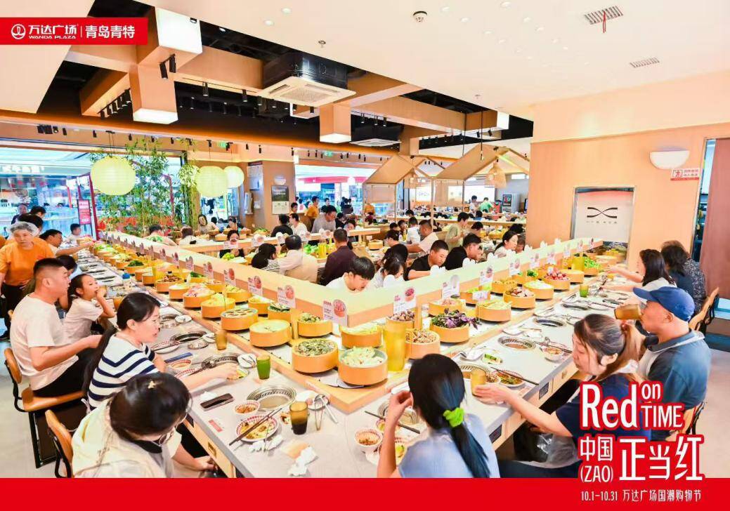 西海岸万达广场推出“当红不让”生活节,紧扣“中国正当红”双节主题。王牌活动“红动奇妙夜”融合水上飞人与灯光秀,呈现视觉盛宴;开展向热爱奔跑·趣味彩虹亲子跑、国庆八天乐·亲子公开课堂、国风运动·少儿武术友谊赛等形式多样的文娱活动,营造沉浸式节庆消费氛围。带动节日期间销售额增长13%。