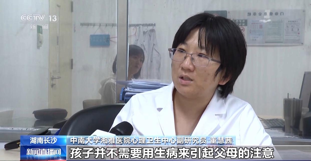 中南大学湘雅医院心理卫生中心副研究员 董慧茜:心理学有一句话叫孩子替家庭在生病,孩子的问题其实反映了家庭的问题。家里的问题解决了,孩子并不需要用生病来引起父母的注意。