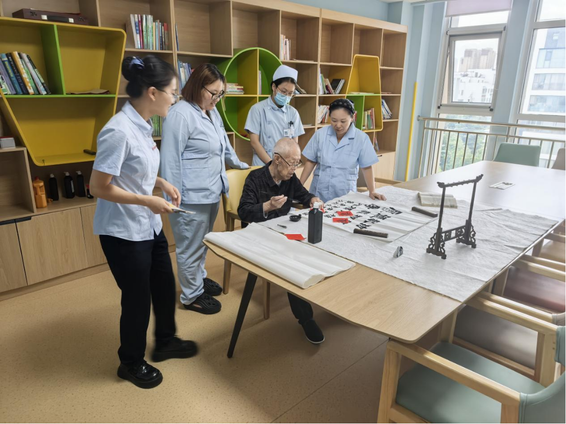 “这字,比上次更有力了!” 在山海瑞颐康养中心的书法室,护士正陪着 80 多岁的莒县老人王老先生练字。自入住以来,这间书法室成了他的 “心头好”,而真正让他 “住得踏实” 的,是遍布康养中心的智慧设备——护士站大屏上,外出、睡眠、跌倒风险数据实时更新;床垫下的监测装置精准记录离床时间并预警;床位雷达能瞬时判断跌倒情况、触发警报。