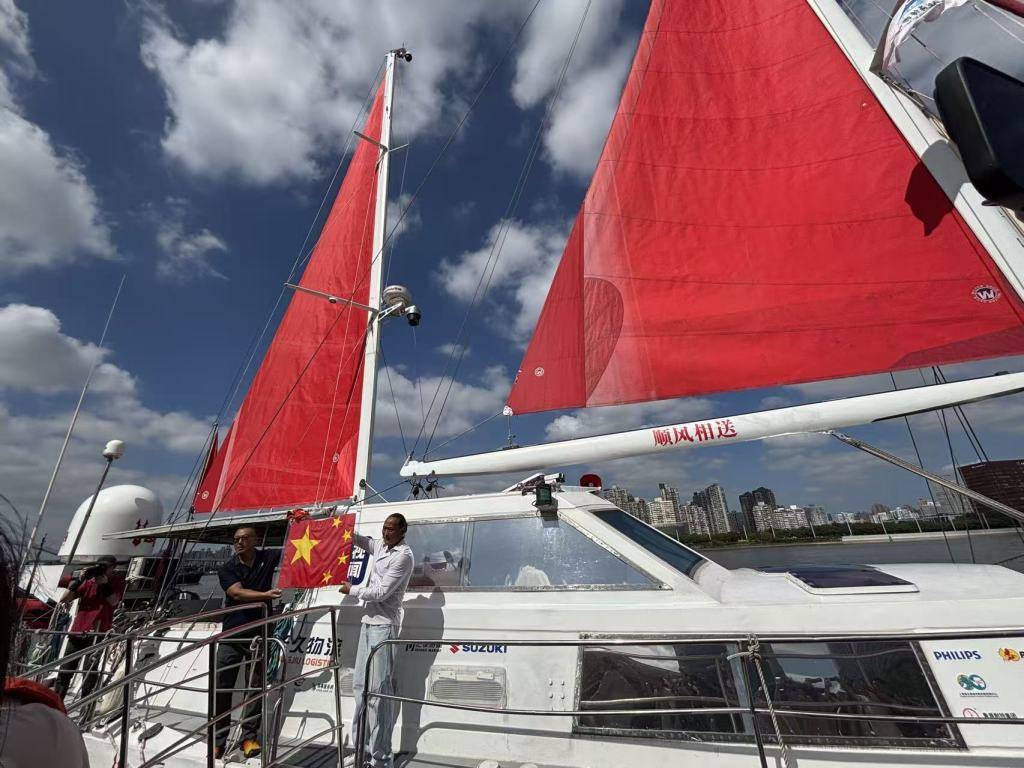 “顺风相送”“一路平安”“一年后再见”……10月10日的上海白莲泾码头,人们不断挥手,目送着一艘挂着红帆的帆船慢慢远行,往浦江深处驶去。