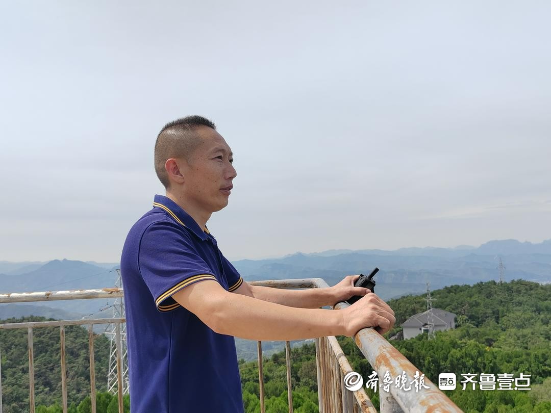 这里有济南市国有柳埠林场海拔最高的林区——跑马岭林区,这里有海拔800多米的瞭望台——跑马岭瞭望台。在这片茫茫林海中,今年47岁的护林员王守焕已经走了26年,他站在树影里,自己也成了一棵坚韧的树。