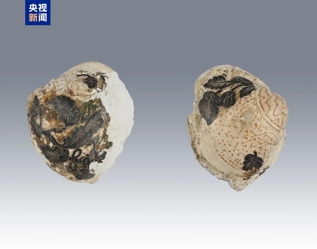 墓葬出土的胭脂盒,长5厘米、宽4.26厘米、厚2.7厘米,用天然贝壳制作而成。表面粘贴有银质叶状图案,呈黑色,背面有褐色斑纹。据考古专家推测,随葬器物中的这些装饰品及其图案和材质,可能体现了墓主个人的喜好。