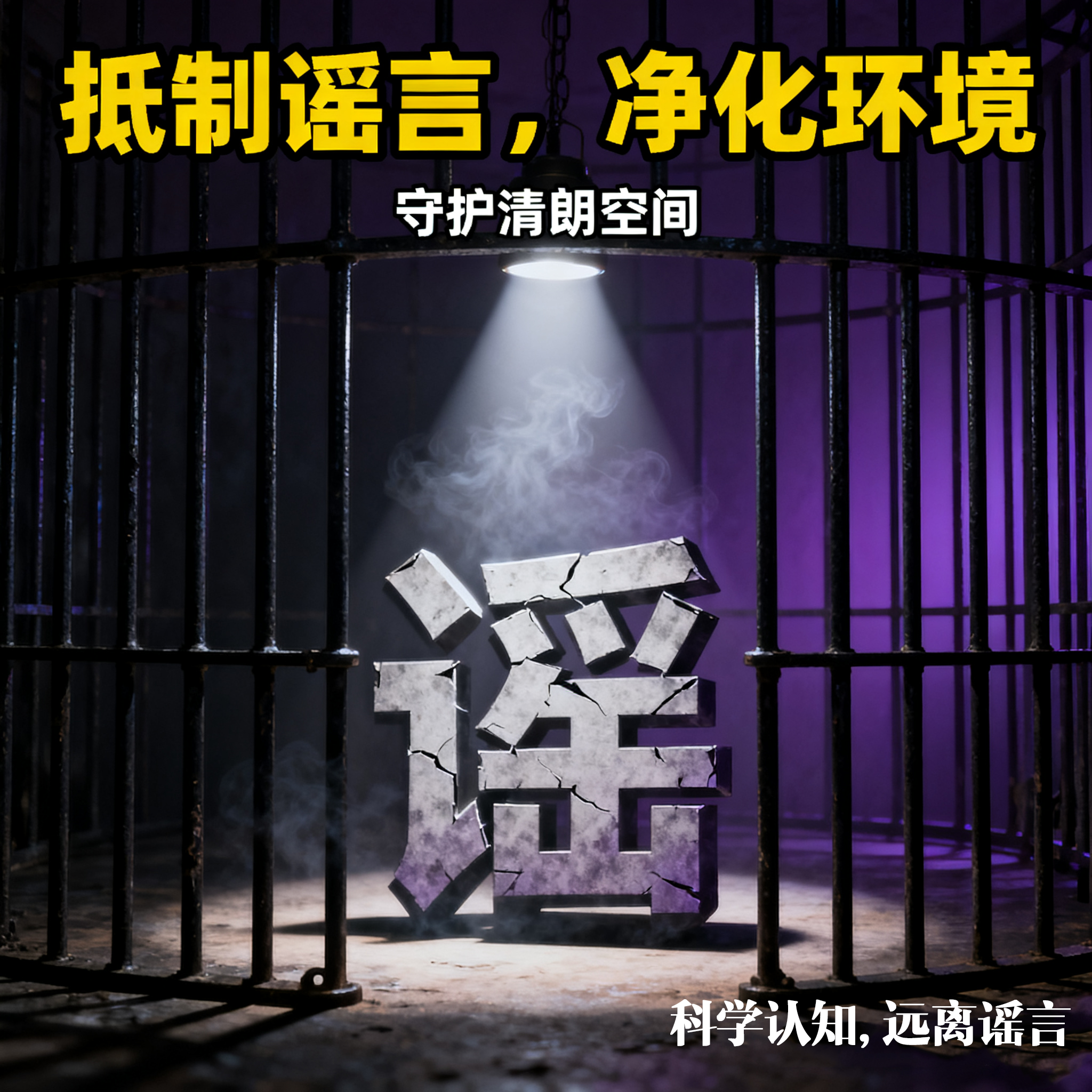 互联网辟谣宣传至关重要。网络空间不是法外之地,净化环境、抵制谣言是每个网民的责任,对维护社会稳定具有极端重要性。谣言危害极大,它混淆是非,侵蚀信任,破坏清朗的网络空间,甚至可能引发社会恐慌,损害公共利益。本次设计作品以“守护清朗空间”为核心,通过将谣言锁在监狱,旨在提升公众的辨识能力,号召大家自觉抵制谣言,共同构筑一个健康、积极、真实的网络生态环境,意义深远。