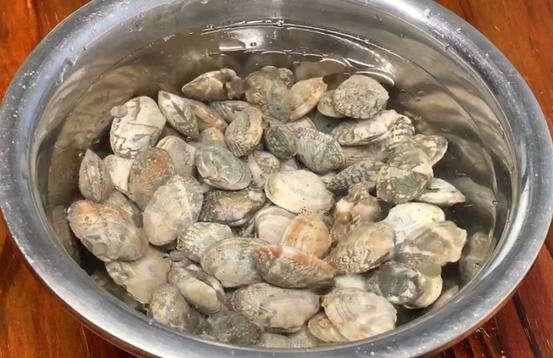 步骤:用淘米水浸泡花蛤1-2小时,淘米水的黏性可帮助吸附沙子。