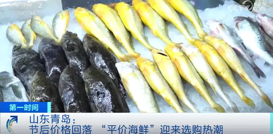 在青岛城阳海鲜商城内记者看到,梭子蟹、南美白对虾、刀鱼、黄花鱼等各类海鲜整齐码放,不少市民穿梭在摊位间进行挑选,很多人都是冲着节后降价而来。