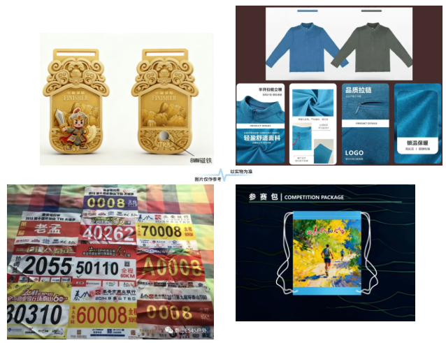 礼包内含:号码簿,计时芯片,专业户外抓绒衣(颜色待定),拉绳包,魔术头巾,急救毯,补给品等。