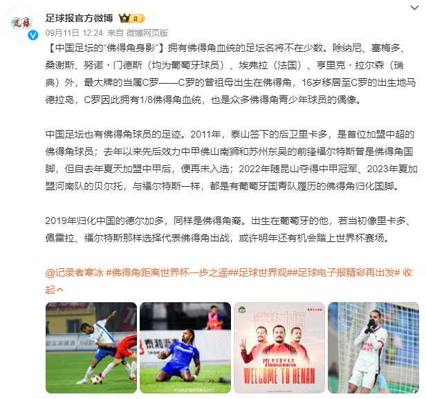 2024年先后效力中甲佛山南狮和苏州东吴的前锋福尔特斯也是佛得角国脚;还有2022年随昆山夺得中甲冠军,2023年加盟河南队的贝尔托。与福尔特斯一样,贝尔托也是葡萄牙国青履历佛得角归化球员。