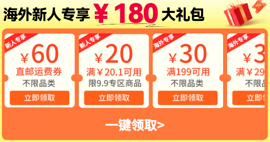 今年京东 11.11 期间,京东全球售海外新用户可直接领取 180 元超值大礼包,其中包含 60 元不限品类直邮运费券与100元全品类券,另有专属 9.9 元包邮专区,轻松下单老干妈、国产文具等日常好物。