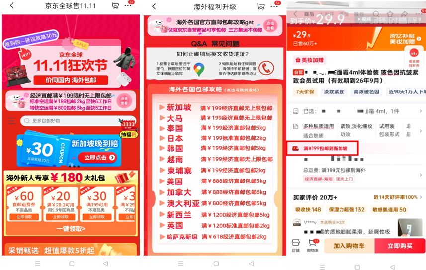 10月14日,京东11.11惊喜开放日在京举行。身处海外的华人用户,只需通过京东APP进入全球售平台,即可同步享受“又好又便宜”的购物体验,不仅有超千元补贴优惠,新用户直领180 元礼包和9.9元包邮专区,针对新加坡等部分地区,还推出了199元起无上限包邮优惠,彻底免除海外用户对“大件运费高”的顾虑。