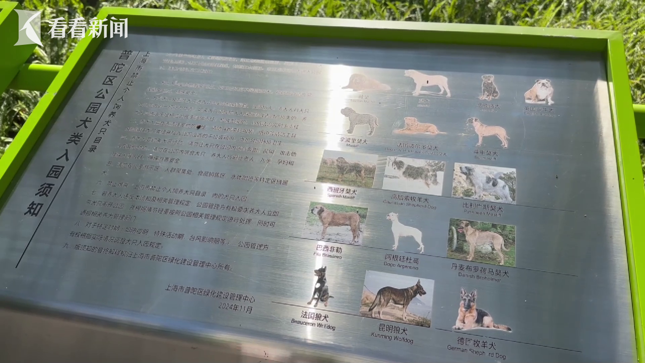 公园入口处的告示牌上,其实标明了可入园的犬种,也对携宠人士提出了一系列要求,包括“需负责清理宠物的粪便,投入公园设置的干垃圾箱内”。但总有一些养狗人士,对于这些文明养狗须知,置若罔闻。公园保洁员说,有时提醒反被无视,晚上九点后不牵绳的情况更普遍,甚至有孩子被大狗吓哭。