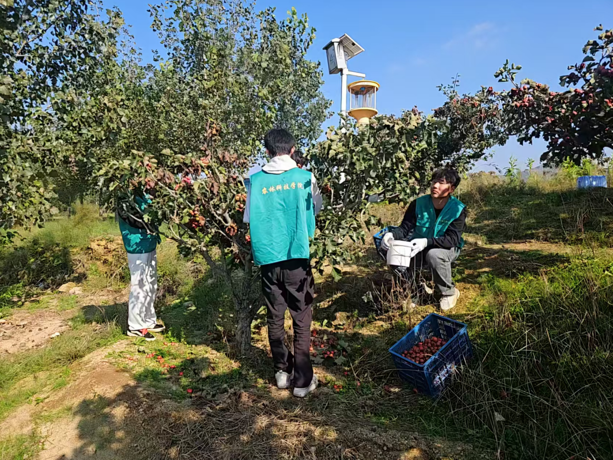 学院第一时间完成志愿招募与组织筹备,组建起5支志愿服务分队,共计130余名师生志愿者参与其中。首批志愿服务队精准对接临朐县寺头镇呈子村山楂种植户需求。志愿服务期间,师生志愿者深入田间地头,协助农户开展山楂采摘、分拣、装运等工作,累计帮助采收山楂 2500 余公斤,有效缓解了农户因阴雨天气面临的秋收压力,保障了秋粮作物及时采收归仓,以实际行动践行高校服务地方发展责任,得到当地群众一致好评。活动中,学院还依托涉农专业人才优势,与寺头镇党委就电商直播带货、人才培养等达成协议,帮助拓展当地农产品销售渠道,助农增收。