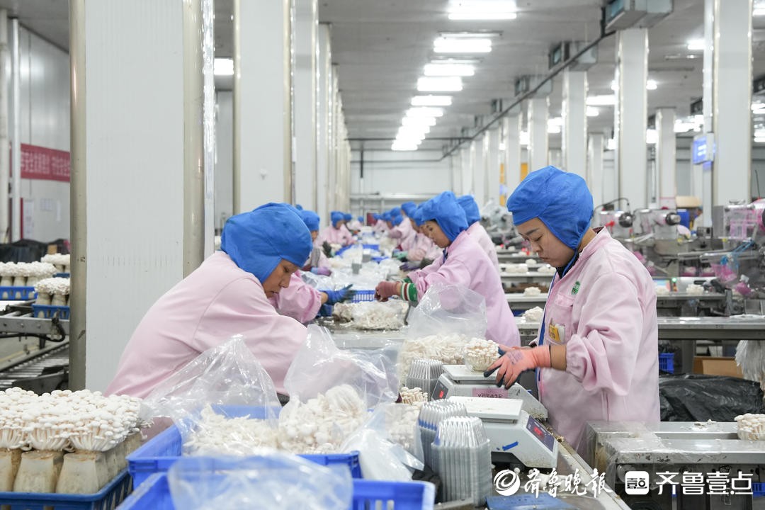 山东雪榕生物科技有限公司的员工正在加工刚刚采收的鲜菇。