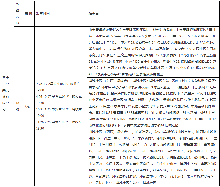 近期,泰安市行政审批服务局对泰安市公共交通有限公司申请公交线路许可调整48路的材料进行了受理,现将有关情况予以公示。在公示期间,如有不同意见,请携带书面材料到泰安市行政审批服务局反映,欢迎社会各界监督,监督电话:0538一8278935,泰安市公共交通有限公司:0538一5395980。