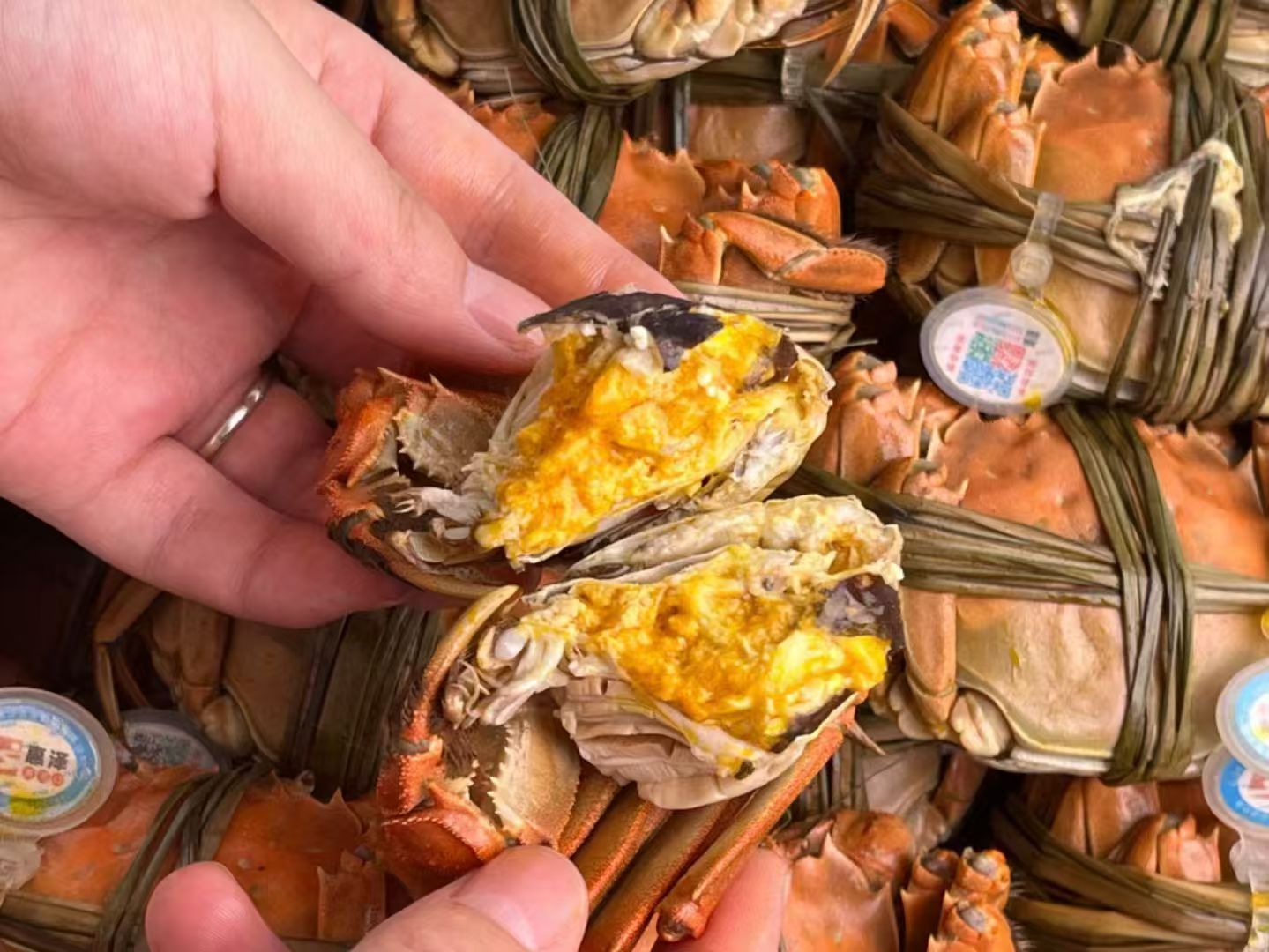 正在挑选大闸蟹的市民孙女士道出了不少人的中秋吃蟹经历:“单位中秋福利发的阳澄湖蟹卡,4公4母,蒸熟后一尝觉得母蟹还可以,公蟹有点水。后来看了新闻发现,阳澄湖大闸蟹10月中下旬才大量上市。”据苏州市政府官方信息,2025年阳澄湖大闸蟹于9月26日正式开捕,首批2000吨于9月底至10月初尝鲜,10月中旬至11月中旬迎来6000吨主力上市期。而蟹品口感有明确时间线:母蟹在10月至11月进入蟹黄爆满的巅峰期,公蟹则要等到11月至12月才会膏体如凝脂,这也解释了孙女士遇到的“公蟹偏水”问题。