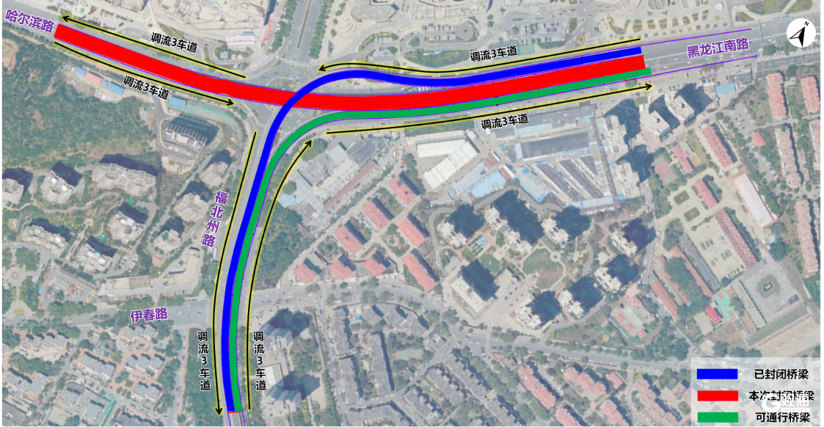 ●华仁立交桥改造迎来新进展。根据施工需要,自2025年10月18日零点起,在封闭黑龙江路左转福州路匝道基础上,将对哈尔滨路-黑龙江路主线桥梁进行双向封闭。