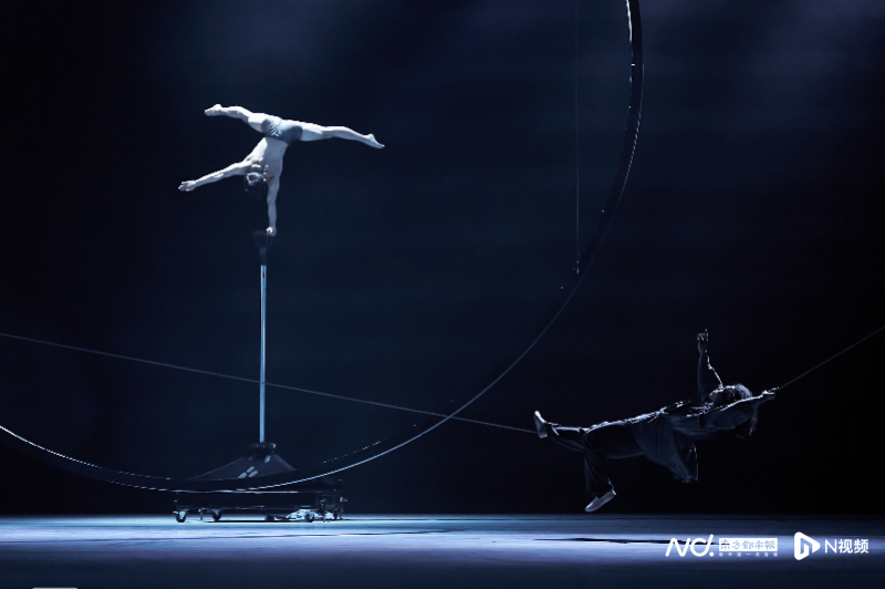 当代杂技舞蹈剧场《站台》由广州市杂技艺术剧院创作演出。该剧围绕旅者在远行中的经历与感受展开,在光影交错的舞台上,“海豚”灵动跳跃、“追风筝的人”执着攀爬、“黑夜幻想”神秘深邃、“指路牌”迷茫摇曳等充满寓意的意象出现在不同章节。作品致力于将传统杂技概念的深度挖掘与现代艺术形式创新相结合,探寻“新马戏”艺术形式,引领观众踏上一场别开生面、惊心动魄的当代杂技剧场冒险。