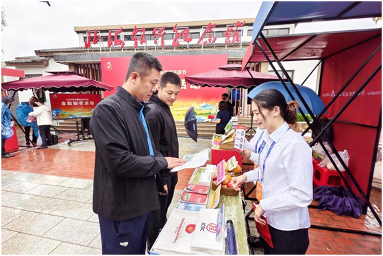 工行山东省分行工作人员在2025年中国农民丰收节“金融助农”活动现场为客户介绍“齐鲁兴农贷”系列产品和服务