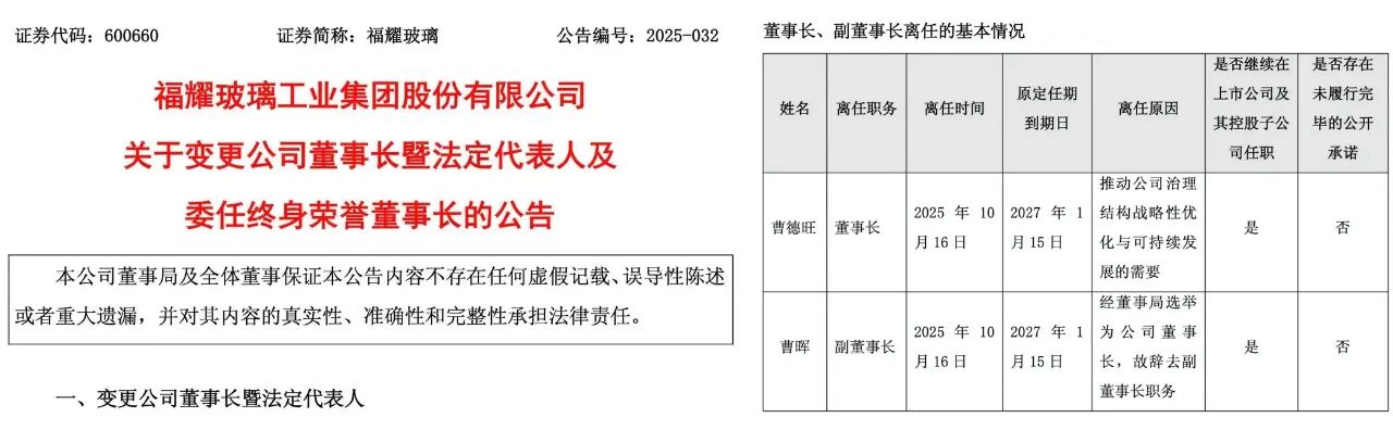 2022 年,曹晖任福建省工商联兼职副主席,积累政企沟通经验;2024 年 1 月,他被任命为福耀玻璃副董事长,开始全面参与董事局决策;直到这次接棒董事长,整个过程衔接顺畅,没有丝毫仓促。这种 “渐进式交接”让福耀避开了很多民企 “子承父业” 的坑。