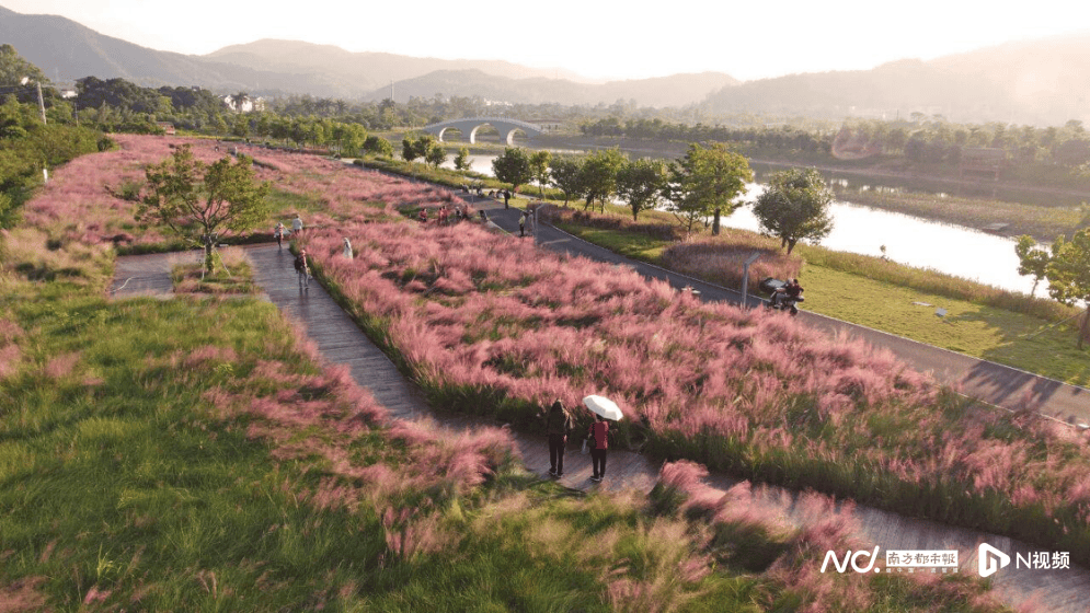 近日,深圳大鹏新区南澳新大禾塘湿地公园内,7000平方米粉黛绝美盛放,为浓浓秋意增添了一份温柔的浪漫,吸引了众多游客前来观赏、打卡、游玩。