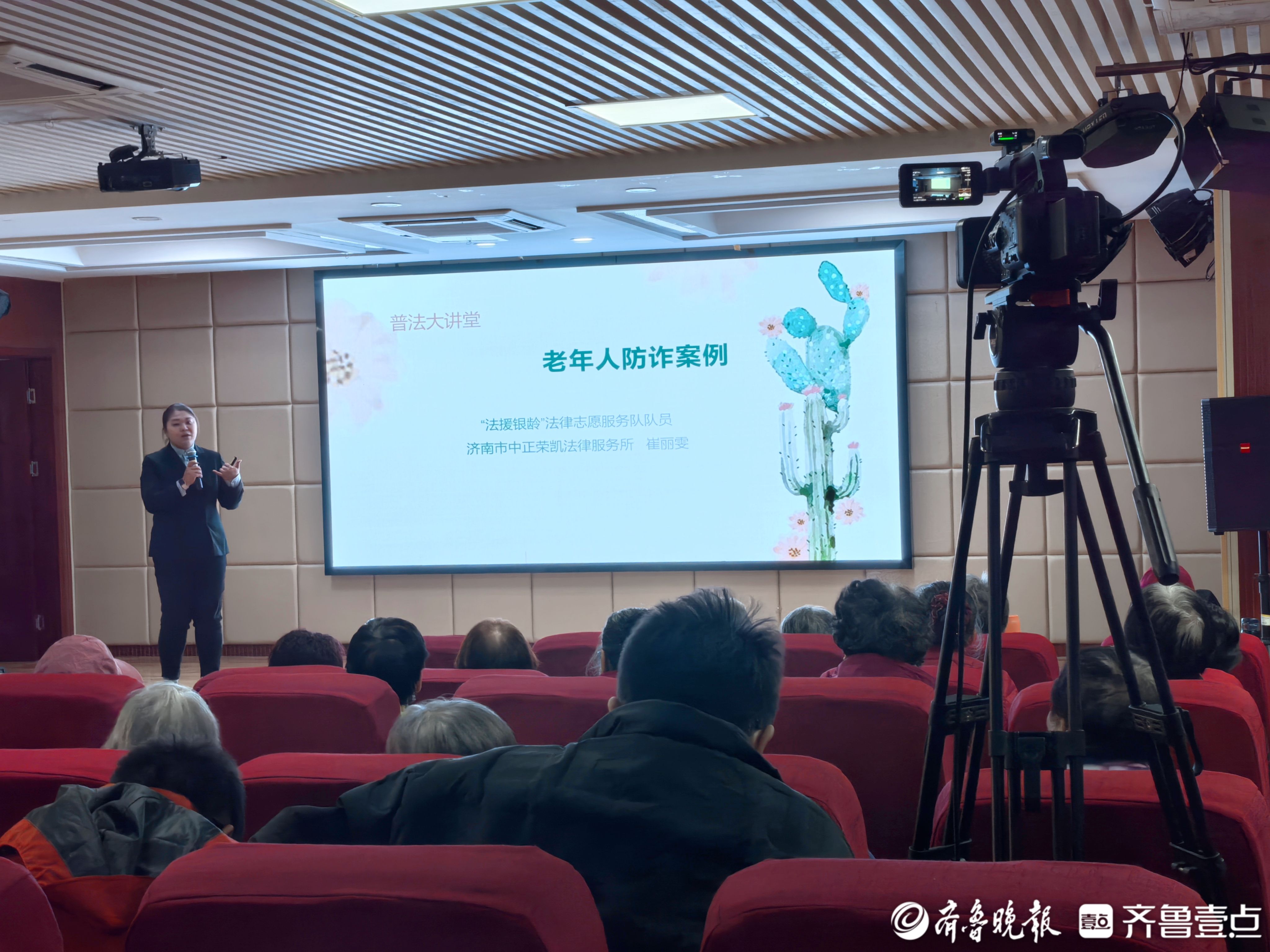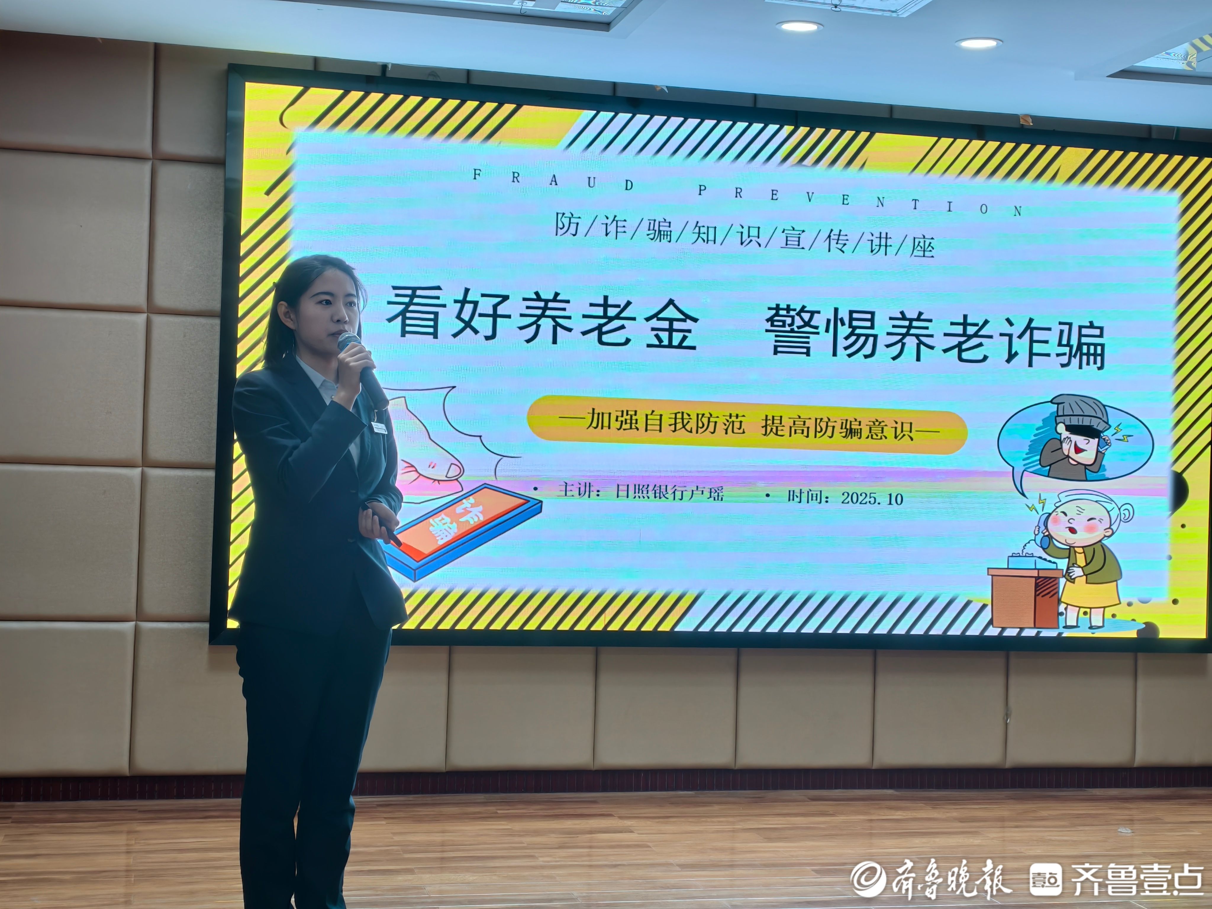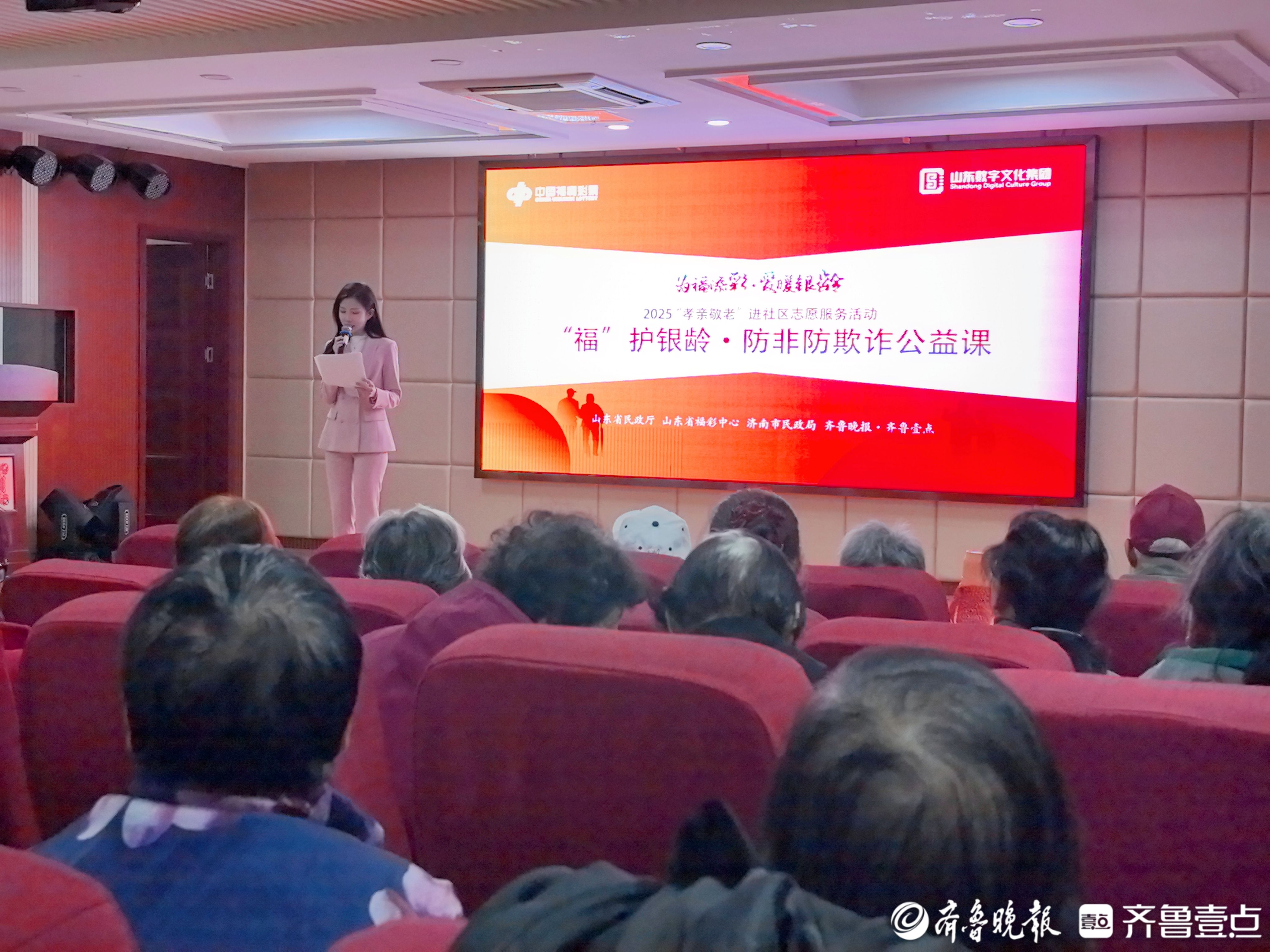 为福添彩,爱暖银龄。10月21日下午,济南市解放路街道历山路社区党群服务中心内暖意融融,由山东省民政厅、山东省福彩中心、济南市民政局、齐鲁晚报·齐鲁壹点联合举办的2025“孝亲敬老”进社区志愿服务活动——“福”护银龄・防非防欺诈公益课,在此温情开讲。课程紧扣老年群体“养老钱安全”,通过专业宣讲与互动交流相结合的形式,为社区长者精准筑牢财产安全“防护网”。