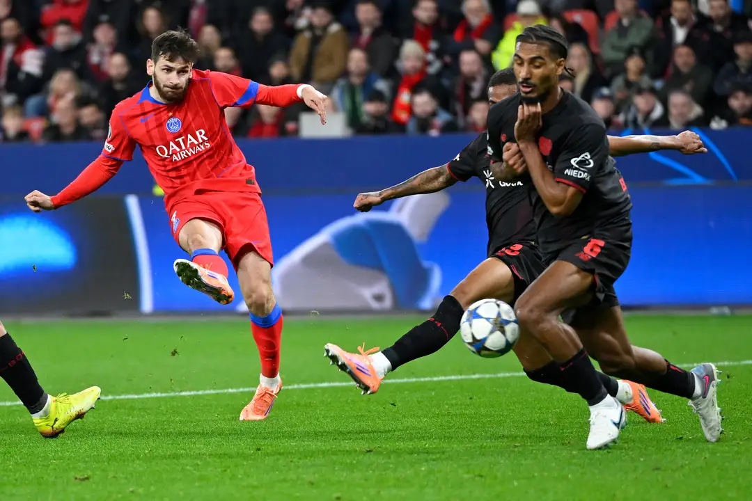 此后,勒沃库森防线彻底崩盘。第44分钟,克瓦拉茨赫利亚抓住机会破门;补时第3分钟,杜埃再入一球完成梅开二度。上半场结束,巴黎4:1领先。