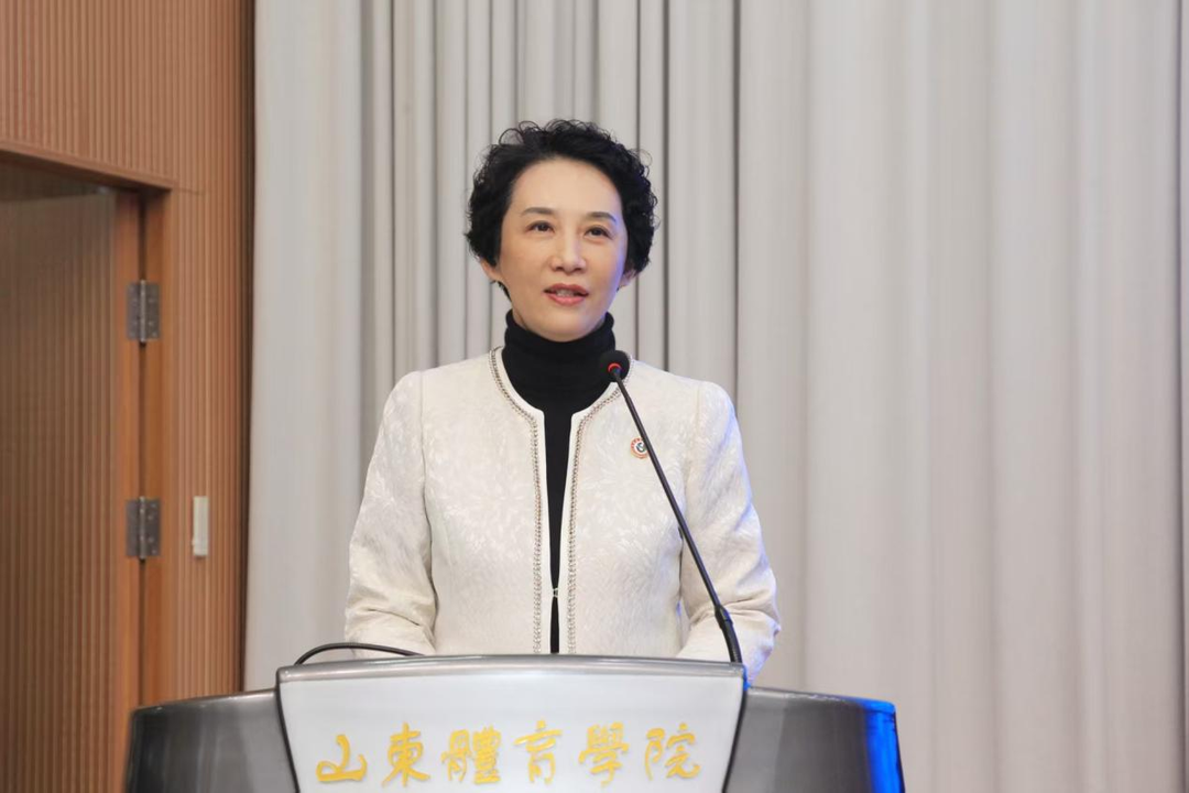 毛莉虹代表山东体育学院向莅临会议的各位领导嘉宾和专家学者表示欢迎。她表示,体育产业作为推动经济结构优化的 “绿色引擎”、孕育活力的 “朝阳载体”,既是践行新发展理念的重要阵地,也是培育新质生产力的关键领域,理论价值与实践前景广阔,山东体育学院作为省内唯一专业体育院校,持续做强体育学学科龙头地位,深化内涵建设、聚力特色发展,近年来在教学科研、学科建设、平台打造等方面取得丰硕成果。她衷心希望与会专家学者借此论坛深入交流,并期待大家以此次会议为纽带,与山东体育学院建立更密切的合作关系,在学科建设、人才共育、科研创新等方面深化交流,合作共进。