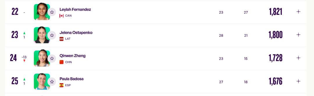 郑钦文跌至世界第24,近两年来首次掉出TOP20