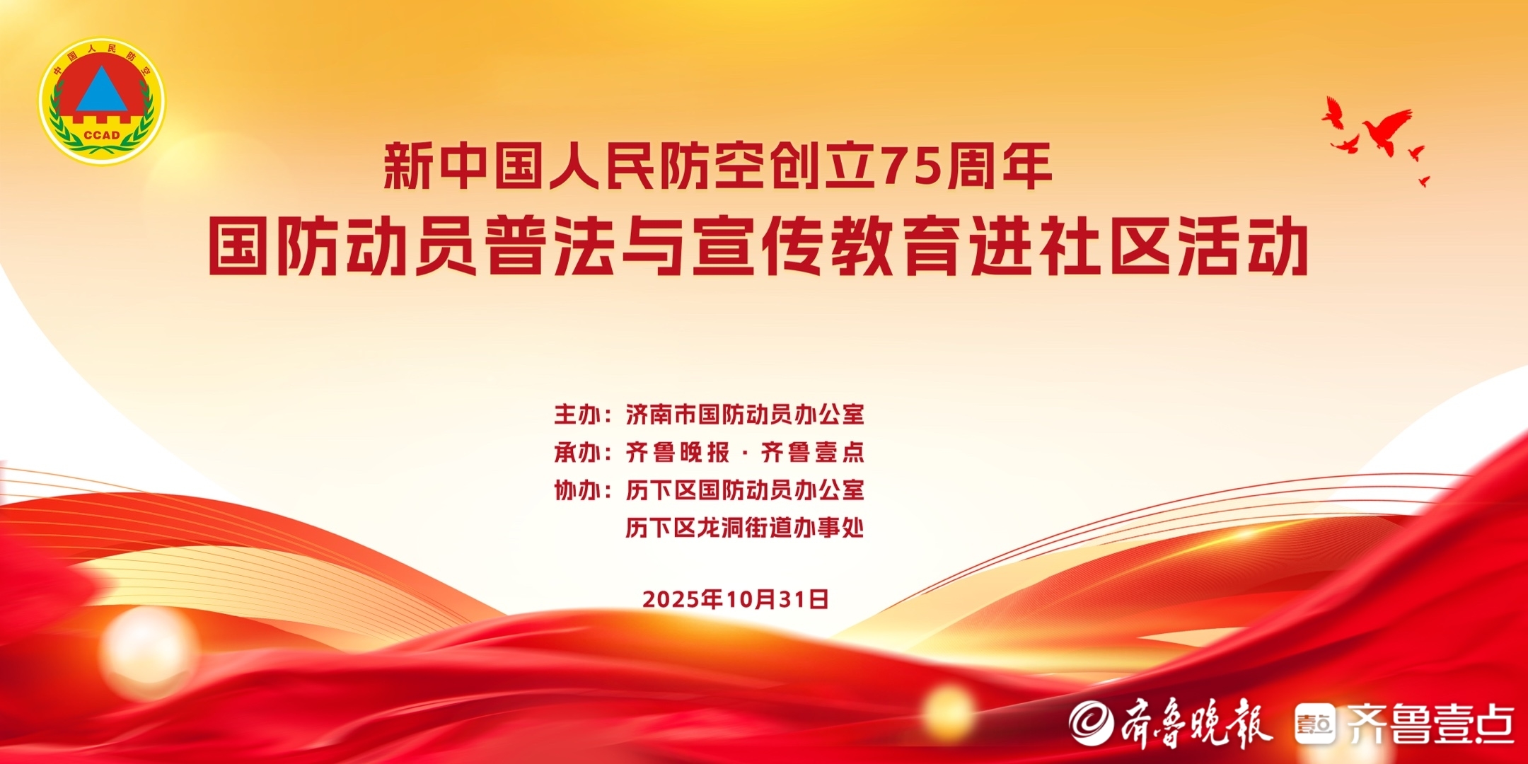 2025年10月31日,新中国人民防空创立75周年。为普及人民防空法律法规知识,提高防空防灾能力,增强全民国防观念和人防意识,10月31日,济南市国动办将走进济南市历下区龙洞街道西江华府社区组织开展国防动员普法与宣传教育进社区活动。