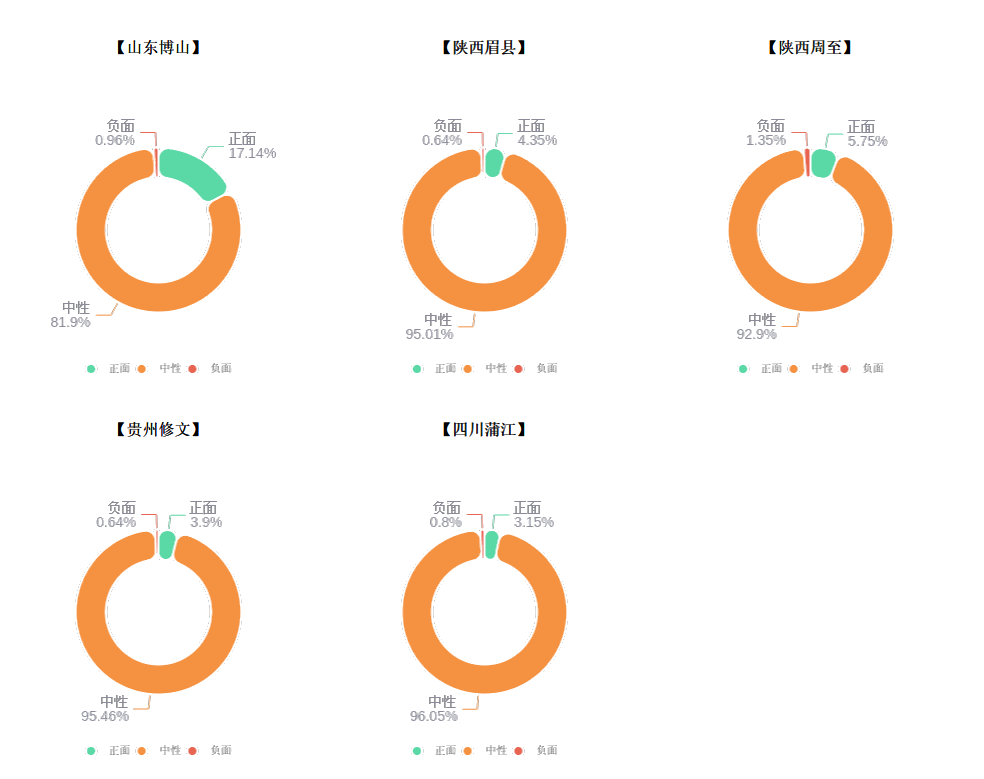梳理发现,分析时间段内,“山东博山”方案正面信息占比约为17.14%,领先其他四方案。尽管“山东博山”方案信息总量不高,但梳理发现,博山区通过举办第十三届猕猴桃文化旅游采摘节,经齐鲁晚报·齐鲁壹点等媒体有效宣传,取得了良好成效。