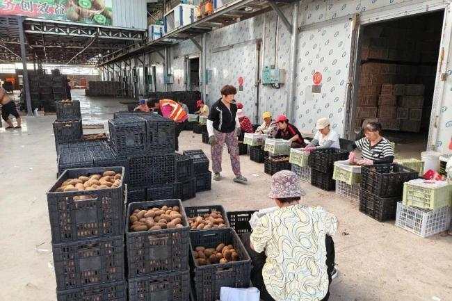陕西眉县某果品合作社工人们正在分拣猕猴桃 图自中国日报网