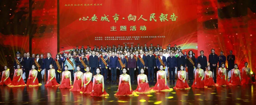 10月30日晚,“心安城市·向人民报告”主题活动举办。省委政法委副书记刘树元,市委常委、政法委书记毕志伟,市委常委、宣传部部长冷兴邦,省委政法委宣传处处长张照利,市人大常委会副主任、党组成员王庆霞,副市长、市公安局局长张庆勇,市政协副主席、民进市委会主委刘庆敖,滨州职业学院党委书记刘荩一,市人大常委会党组成员、秘书长刘卫忠,市政协党组成员、秘书长李荣舜出席活动。