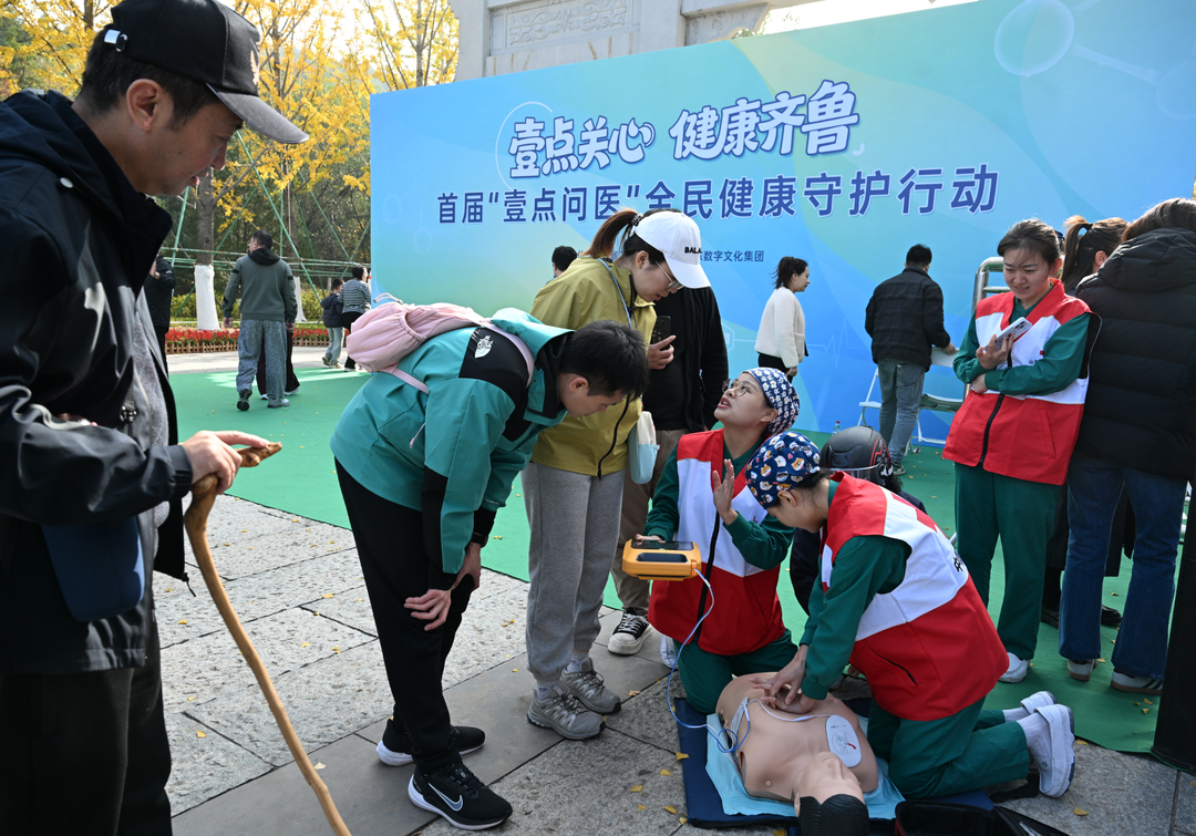 在山东第一医科大学附属省立医院的展位旁,急救培训区格外热闹——医护人员特意带来模拟人等专业设备,现场演示心肺复苏操作流程。市民王女士主动上前尝试,现场不少市民也围拢过来,拿出手机拍摄操作步骤,生怕错过关键细节,学习热情格外高涨。