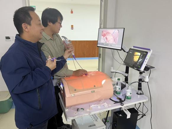 培训期间,周敬强、刘双等专家系统解读了腹腔镜联合胆道镜技术、PTOBF技术、ERCP技术及规范等前沿理论。学员们现场观摩了16台高难度微创手术演示,涵盖腹腔镜经胆囊管胆总管取石术、腹腔镜胆总管切开取石一期缝合术、经皮经肝穿刺+Ⅰ期窦道扩张+硬质胆道镜取石术(PTOBF)、ERCP等多种术式。特别设置的动物模型实操环节,学员在导师指导下完成腹腔镜与胆道镜联合模拟手术,实现了从理论到实践的扎实跨越。