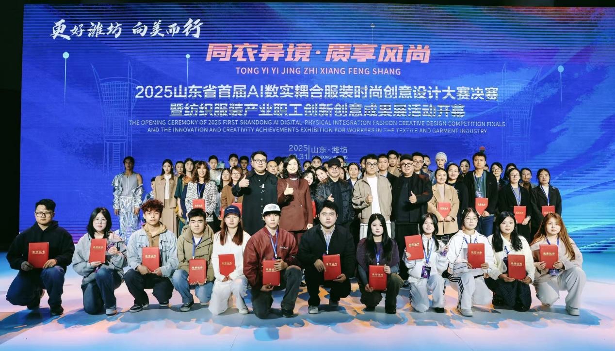 10月31日至11月1日,“更好潍坊·向美而行”2025年山东省首届AI数实耦合服装时尚创意设计大赛决赛暨纺织服装产业职工创新创意成果展活动在潍坊举办。这场集竞赛、展览、发布、市集于一体的盛会,既是广大纺织服装产业职工技能比武、技艺交流、展示风采的舞台,也是潍坊纺织服装产业实力的集中亮相,更是这座“传统纺织名城”迈向高质量发展的生动实践。
