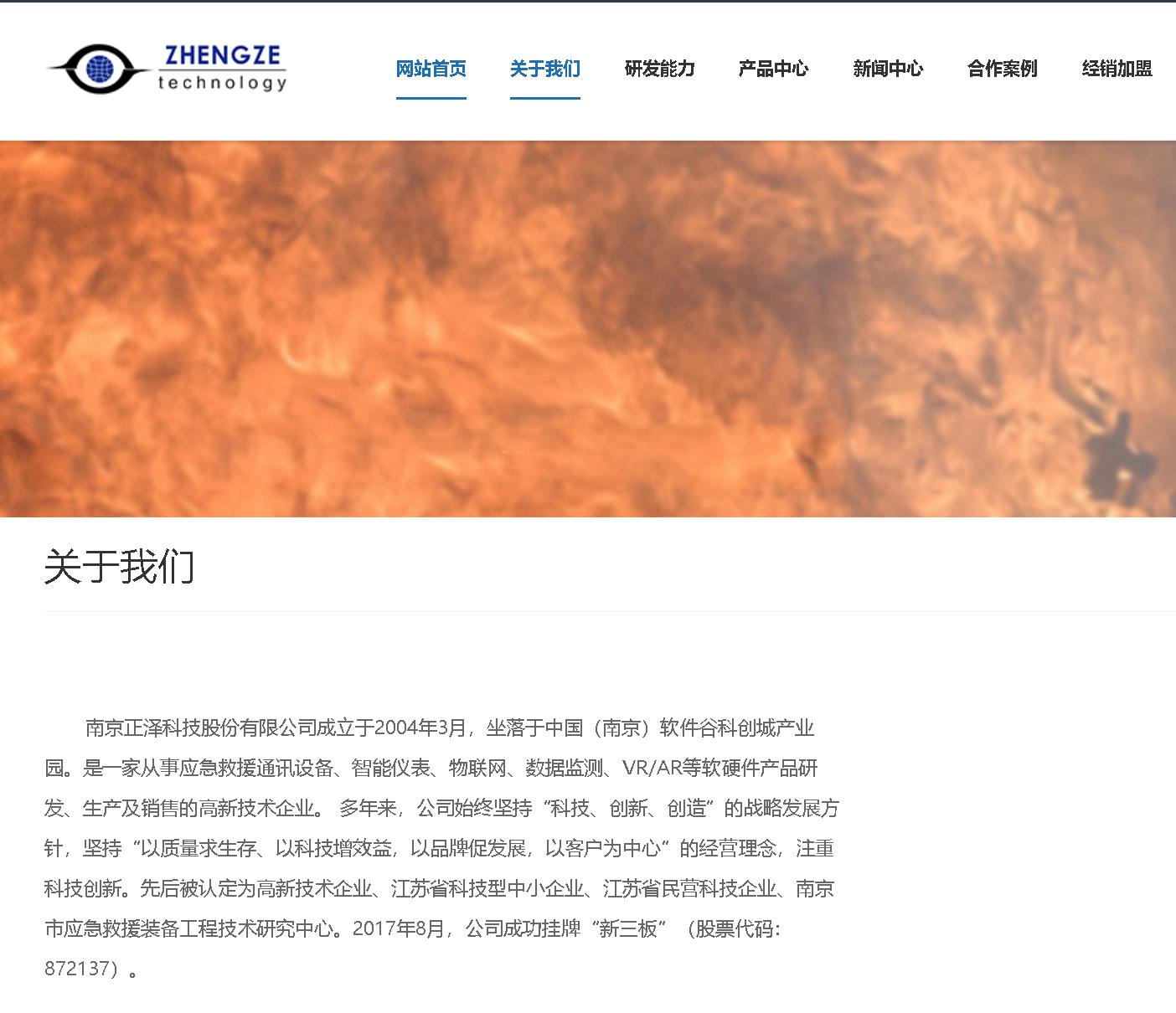 南京正泽科技股份有限公司成立于2004年3月,坐落于中国(南京)软件谷科创城产业园。是一家从事应急救援通讯设备、智能仪表、物联网、数据监测、VR/AR等软硬件产品研发、生产及销售的高新技术企业。2017年8月,公司成功挂牌“新三板”(股票代码:872137)。