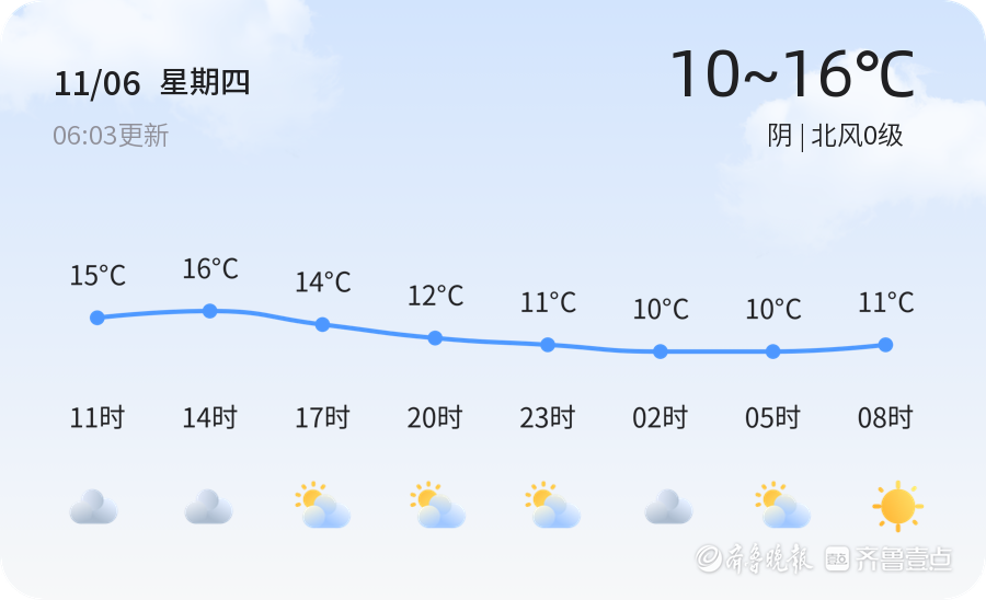 今日是11月6日,农历九月十七,星期四。潍坊市今日天气以阴天为主,北风0级,气温在10到16摄氏度之间,空气湿度达到100%。空气质量方面,PM2.5指数为55,属于良好水平。由于天气阴沉,能见度较低,建议市民出行时注意防雾,确保行车安全。
