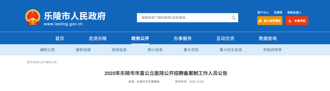 根据《事业单位人事管理条例》《山东省实行人员控制总量备案管理的事业单位人事管理办法(试行)》和公开招聘有关规定,结合各医院岗位空缺情况和工作需要,2025年乐陵市市直公立医院面向社会公开招聘30名备案制工作人员(具体岗位见附件),现将有关事项公告如下: