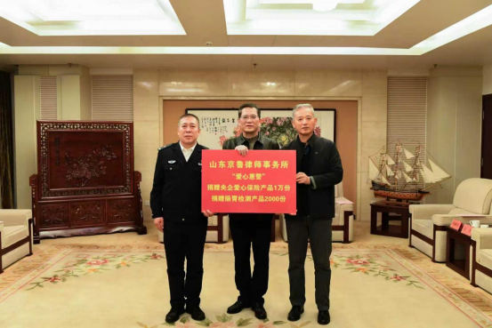 山东京鲁律师事务所主任郝纪勇表示,潍坊市公安局以实施政治工作行动年度计划为抓手,深入抓好政治建警,推进素质能力提升,全面从严管党治警,深化爱警暖警措施,切实推动了公安队伍建设全面发展。此次,京鲁律所向潍坊市公安局捐赠为广大民警辅警赠送2000份肠胃检测产品,以及10000份爱心保险,为和平年代牺牲最多、奉献最大的人民警察队伍表达我们最直接、最实在的关心与敬意