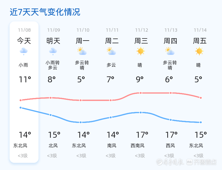 济南今日迎来小雨天气明日气温小幅波动