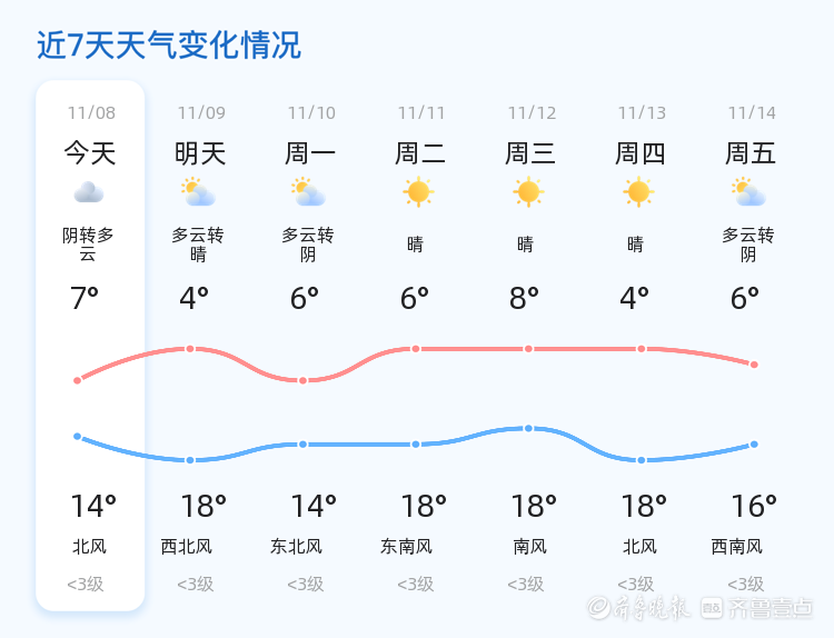 明天(11月9日),临沂市天气将转为多云,局部地区可能出现晴朗天气。气温较今日有所上升,最低气温为4℃,最高气温为18℃,风向为西北风,风力小于3级。市民可以感受到天气逐渐转晴,适合户外活动。