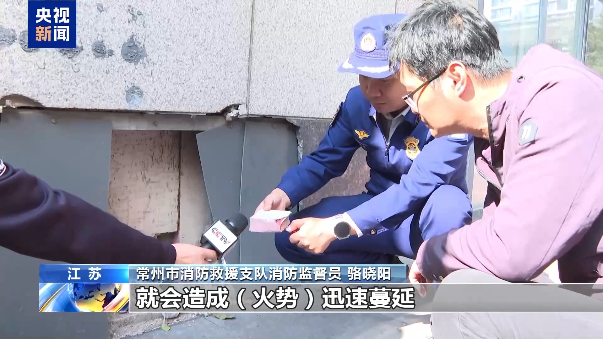 常州市消防救援支队消防监督员 骆晓阳:如果有人抽烟,遗留火种,把外墙保温可燃的部分点燃,就会造成火势迅速蔓延。