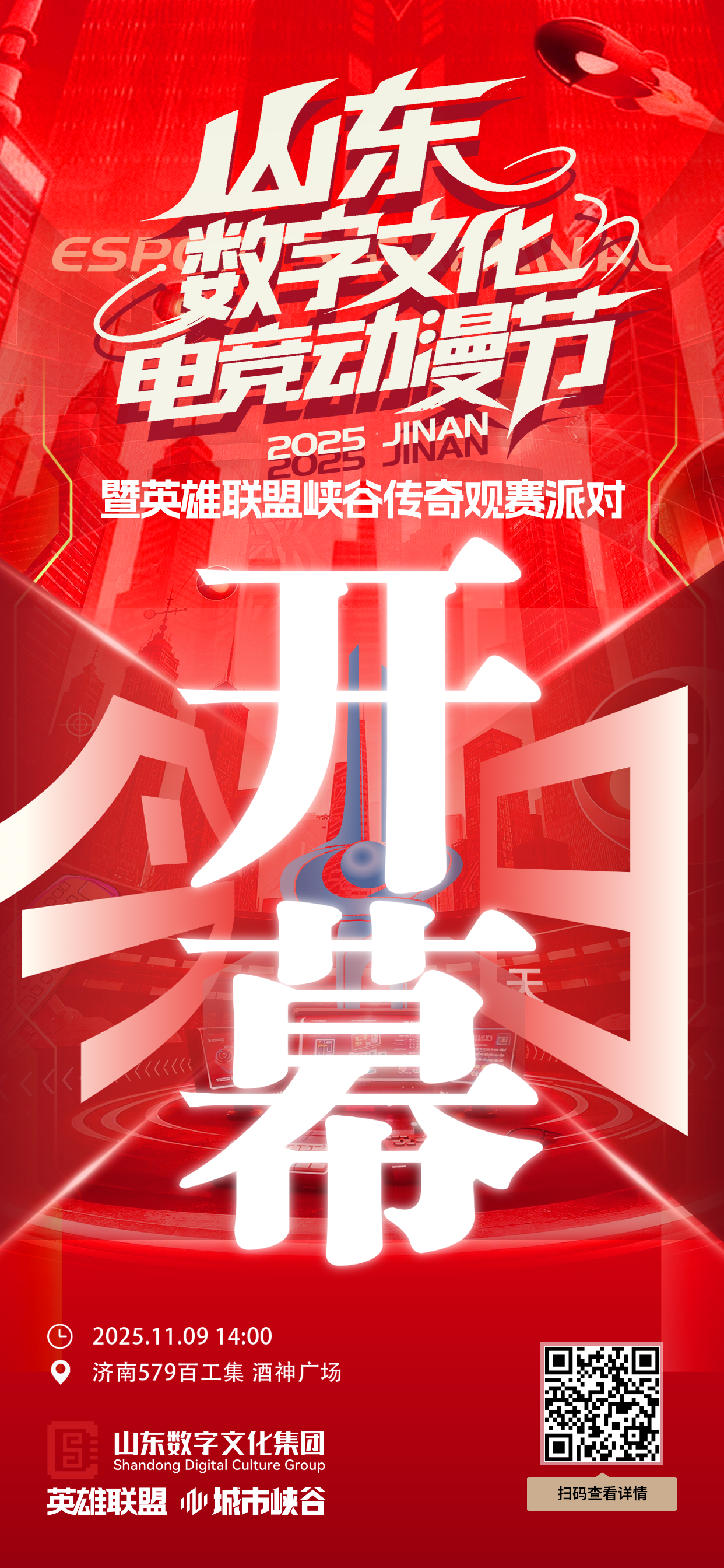 争者留其名,峡谷见真章!2025英雄联盟全球总决赛终极对决11月9日正式开始!由山东数字文化集团携手腾讯联合打造的首届山东数字文化电竞动漫节暨英雄联盟峡谷传奇观赛派对将于下午2点在济南579百工集酒神广场高能开启,快来现场一起感受一场零时差、沉浸式、福利爆棚的线下狂欢吧!