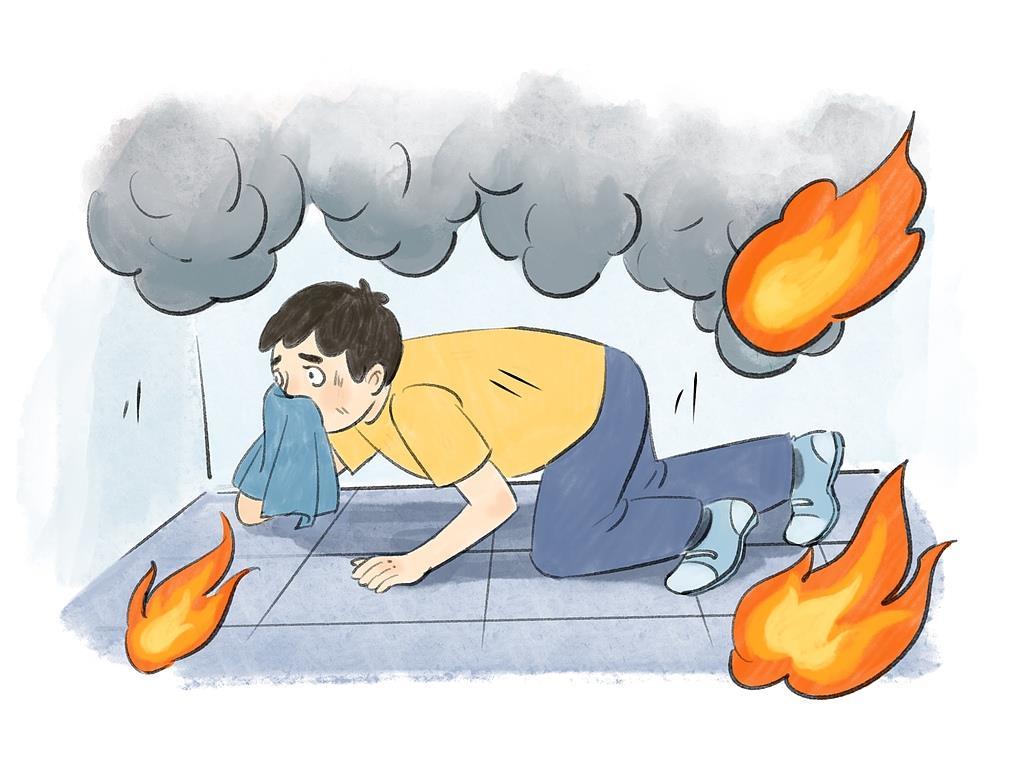 火势小、烟雾少、疏散通道无堵塞时,请沿疏散楼梯弯腰低姿快速逃生,切勿贪恋财物,严禁乘坐电梯。火势大、烟雾浓或楼梯间着火时,待在家中更安全。请关闭房门,用湿毛巾、湿衣物等堵住门缝,阻挡烟雾进入。到阳台、窗口等易被救援人员发现的位置,通过呼喊、挥舞鲜艳衣物等方式呼救,等待救援。同时,请勿盲目跳楼、不试图穿过高温浓烟。