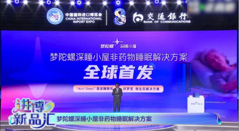 作为进博“老朋友”,连续八届“全勤”参展的梦陀螺深睡小屋便在今天正式发布非药物睡眠解决方案,全球首发两款创新产品,其中一款便是出现在新华网进博现场主题报道中的Nutrisleep7慢波睡眠机;另一款则是好梦官·微生态解决方案。
