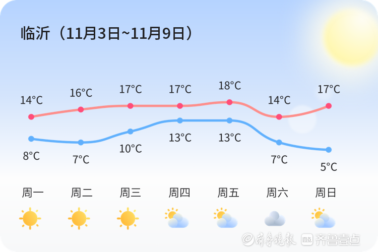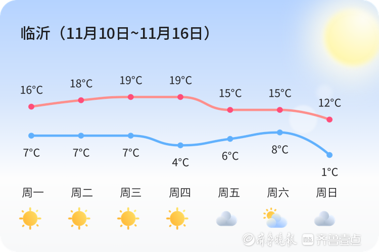 上周(11月3日~11月9日)我市晴、多云天比较多,可能还会有雨、阴等天气。 全市周平均最高温16℃,平均最低温9℃,平均气温12℃,周最高气温18℃,出现在周五,周最低温5℃,出现在周日。 具体气温变化情况如下图。 本周总体以晴、多云为主基调,可能还会有阴等天气。具体天气情况请关注每日天气情况预告。 本周气温变化情况: 最低气温1~8℃,最高气温12~19℃。 需要关注及时最新预报。 具体气温变化情况如下图。