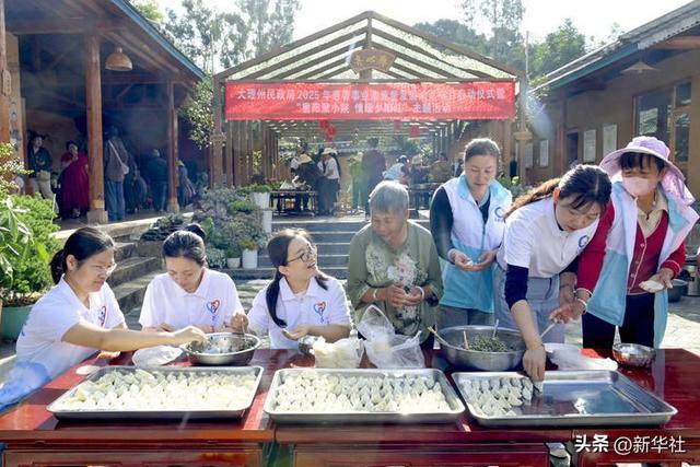 志愿者在云南省大理白族自治州南涧彝族自治县南涧镇西山村幸福小院内为老人包饺子(2025年10月29日摄)。南涧县针对农村“一老一小”群体的急难愁盼问题,创新“无量幸福小院”模式,采用“集体建院、分户居住、互助服务”机制,整合村组现有闲置资源,多元筹资,为留守老人和儿童提供老年助餐、日间照料、儿童托管等“一站式”服务。新华社发(适志宏 摄)